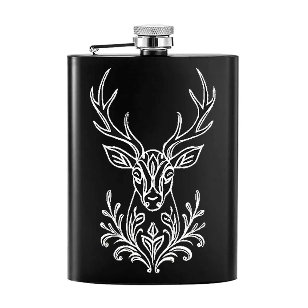 Stilvolle Eleganz für unterwegs: Dein personalisierbarer Flachmann „Hirschkopf mit Ornamenten“