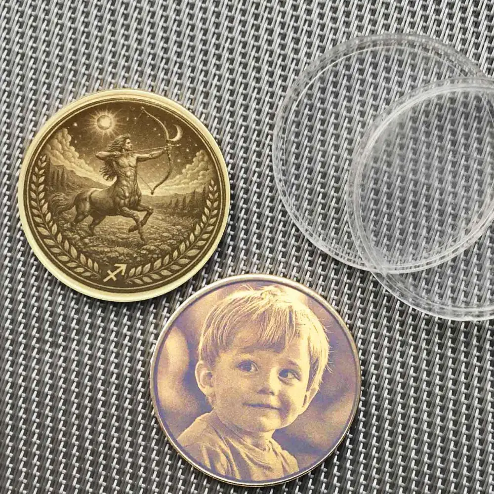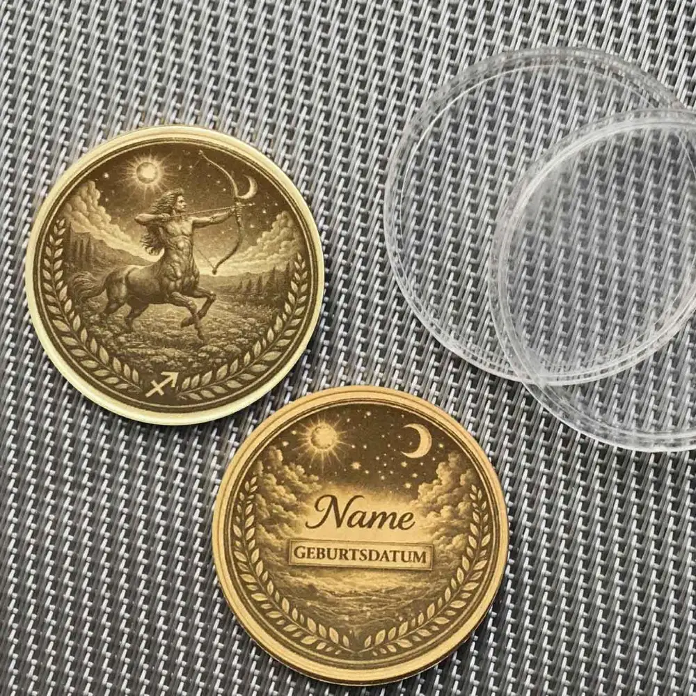 Geburtstagsgeschenke gibt es viele, aber diese Münze bleibt. Für alle, die im Zeichen des Schützen (23. November – 21. Dezember) geboren sind, bieten wir hier ein personalisierbares Highlight an. Auf der Vorderseite prangt das kraftvolle Zentauren-Motiv, das den Bogen spannt. Die Rückseite gehört dir: Wähle zwischen einer Textgravur mit Namen und Geburtsdatum oder einer vollflächigen Fotogravur. Perfekt als Talisman oder edles Sammlerstück.